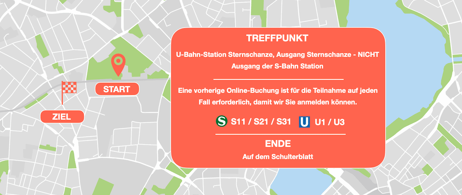 Eine Buchung im Voraus ist zwingend nötig, damit Sie eine Anmeldung für die kulinarische Schanzenführung erhalten. Ohne Online-Buchung können wir Sie leider nicht einplanen. Ein Kauf unserer Tickets ist vor Ort leider nicht möglich.